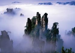 - 張家界景區(qū)云霧繚繞,宛如仙境引客